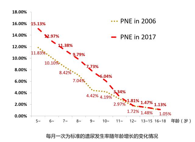 中国儿童和青少年夜遗尿症的发病率较 10 年前显著提高,已接近欧美发病率的水平。目前国内 6-7 岁学龄儿童遗尿症发病率已经超过 10%,直到 18 岁成年仍然有 1%-2% 的青少年存在遗尿症 2-3。